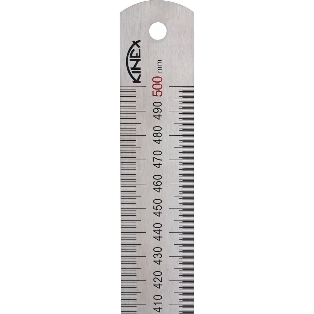 Стальная линейка 500х30х1 мм, цветная шкала 0,5 мм Kinex (K-MET) 1022-02-050 оснащена шкалой с 1.0мм и 0,5мм шкалой для удобства использования. Качественная не бликующая лазерная маркировка. На обратной стороне линейки нанесена специальная сводная таблица.