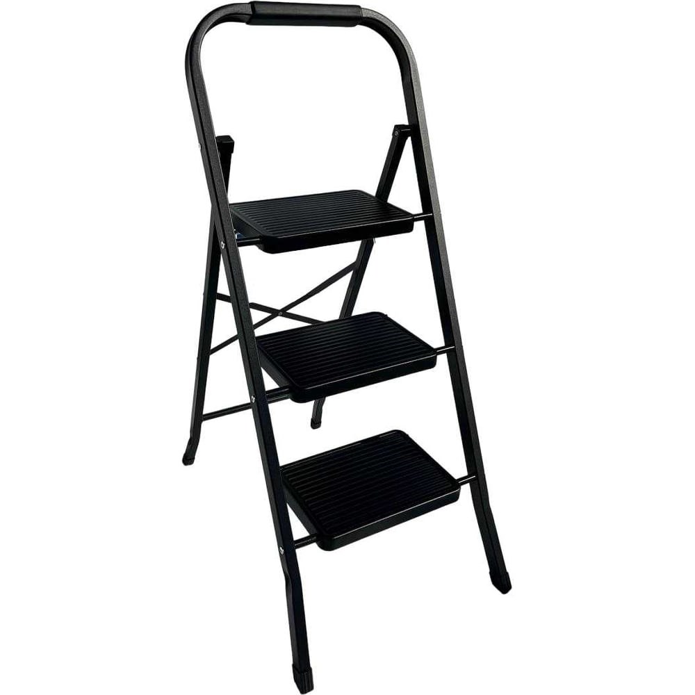 Стальная стремянка АЛЮБЭСТ DL103B 3 ступени применяется для бытовых и строительных работ на высоте. Выполнена из стали, окрашенной порошковой краской благодаря чему отличается прочностью и устойчивостью к образованию коррозии, так же имеет яркий и стильный внешний вид, который впишется в ваш интерьер. Широкие ступени обеспечивают комфорт и безопасность при работе. Дополнительные противоскользящие накладки на ножках придают максимальную устойчивость во время эксплуатации. Благодаря ручке вы будете чувствовать себя уверенно на высоте. Компактное хранение. В сложенном виде не займет много места при транспортировки или хранении.