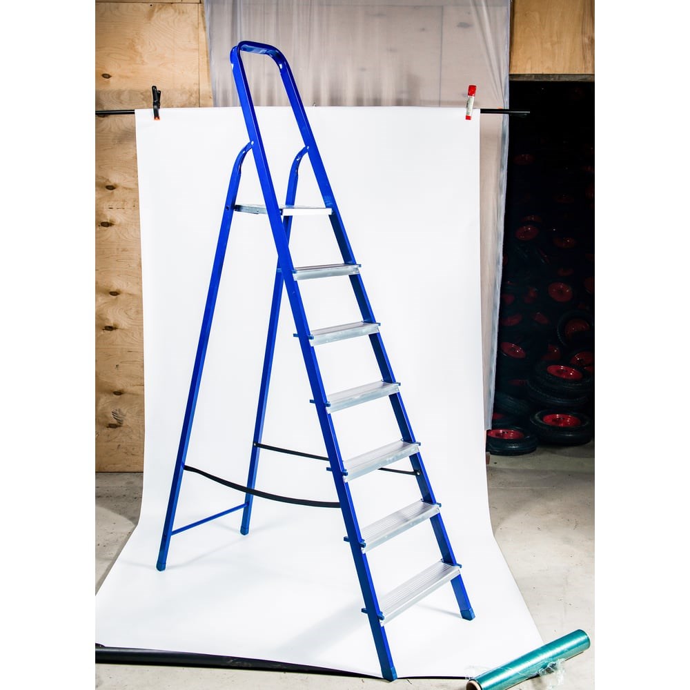 Стремянка подходит для работ как в помещении, так и на улице. Она изготовлена из высококачественного алюминиевого профиля. Конструкция снабжена широкой плоскостью и ступенями с рифлеными поверхностями, предотвращающими случайное скольжение. На ножках предусмотрены специальные пластиковые заглушки, защищающие напольное покрытие от повреждений. Стремянка способна выдержать вес до 150 кг. Она позволяет совершать работы на высоте и комфортно размещает до 2-ух человек.
