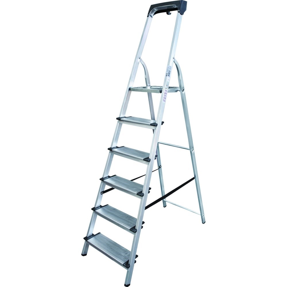 Стальная стремянка с алюминиевыми ступенями 130 мм и органайзером Новая Высота 1x6 1138106 предназначена для бытового использования. Каждая ступень - площадка глубиной 130 мм. Меньше усталости при длительной работе. Имеет стойки из окрашенного стального профиля, ступени из экструдированного алюминиевого профиля. Тройное крепление стоек заднего каркаса с развальцовкой повышает устойчивость стремянки. Модель укомплектована органайзером с 14-ю отверстиями под инструмент и крюком для ведра 5 кг. Страховочные ремни на заклёпках с увеличенной шляпкой создают жёсткую конструкцию. Не гниют и не выгорают.