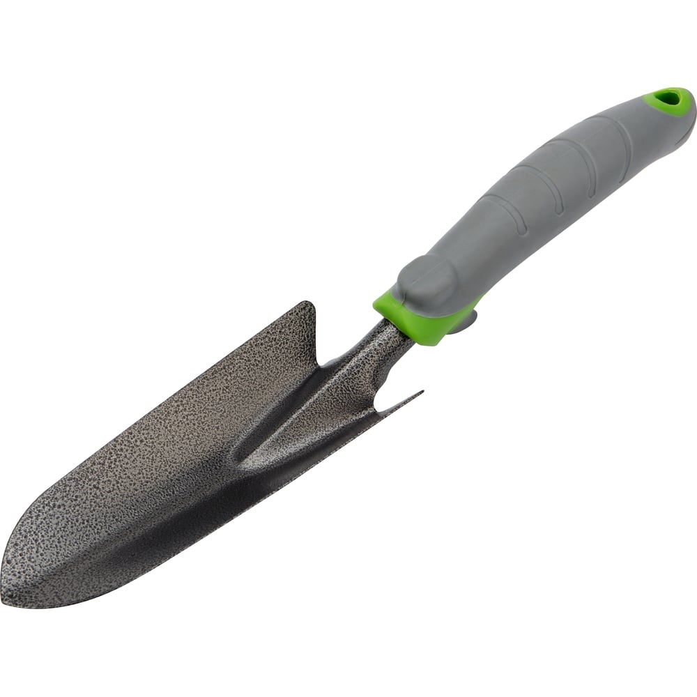 Стальной посадочный совок с прорезиненной ручкой Четыре сезона 64-0001 – компактный и удобный в саду инструмент для посадки растений и обработки почвы на клумбах и грядках. Прорезиненная ручка и удобный упор позволяют комфортно пользоваться даже несколько часов подряд. Углеродистая сталь обеспечивает долговечное использование даже при работе с каменистой почвой. По окончании использования рабочую часть инструмента необходимо очистить от остатков грунта.