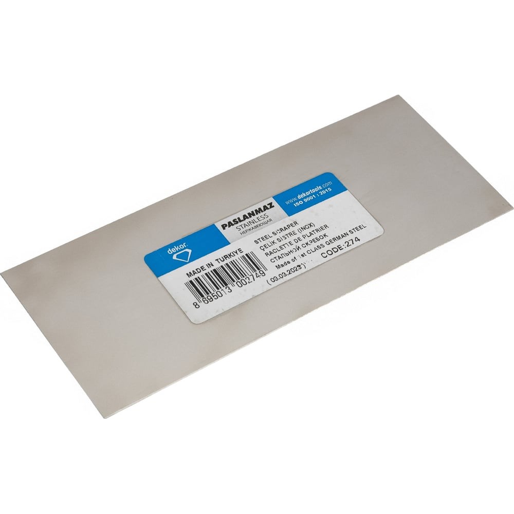 Стальной скребок DEKOR 60х150мм 274 выполнен из пружинистой нержавеющей стали. Удобно держать в руках. Подходит для плитки, стекла и металла. Толщина лезвия 0.3 мм.