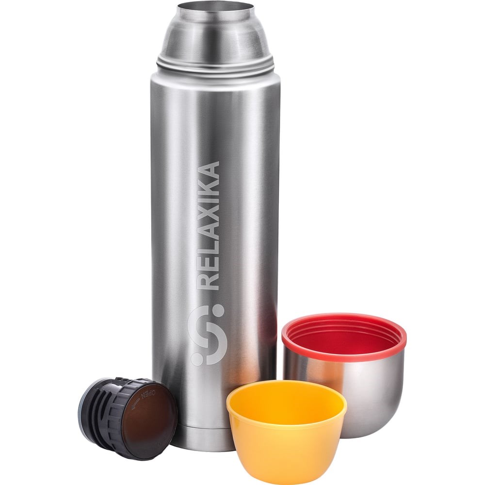 Термос Relaxika 102, 1.2 л, 2 чашки, стальной, R102.1200.1 представляет собой классическую модель, обладающую высокими показателями удержания температуры напитка. Применяется для походов, путешествий, спортивных мероприятий, а также подходит для ежедневного использования. Благодаря вакуумной изоляции и узкому горлышку напиток остается холодным в течение 40 часов и горячим до 34 часов. Термос имеет прочные двойные стенки, выполненные из высококачественной нержавеющей стали 18/8. Он не содержит бисфенол А, поэтому безвреден для здоровья. Не рекомендуется мыть в посудомоечной машине.
