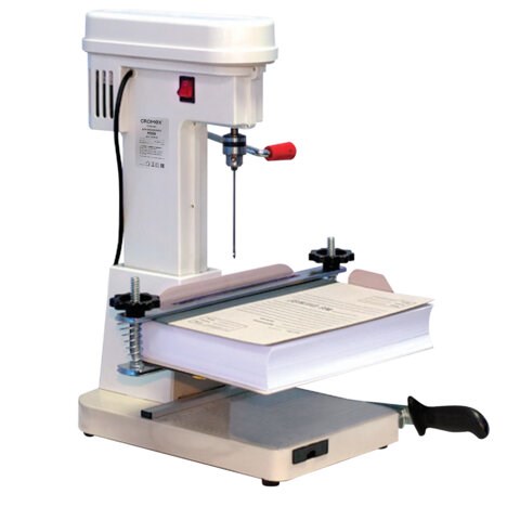 Благодаря мотору мощностью 250 Вт станок CROMEX M268 способен сверлить и прошивать стопу бумаги до 100 мм (950 листов). Струбцина-лоток позволяет сформировать пачку бумаг и удерживать их вместе для точного и равномерного расположения листов.