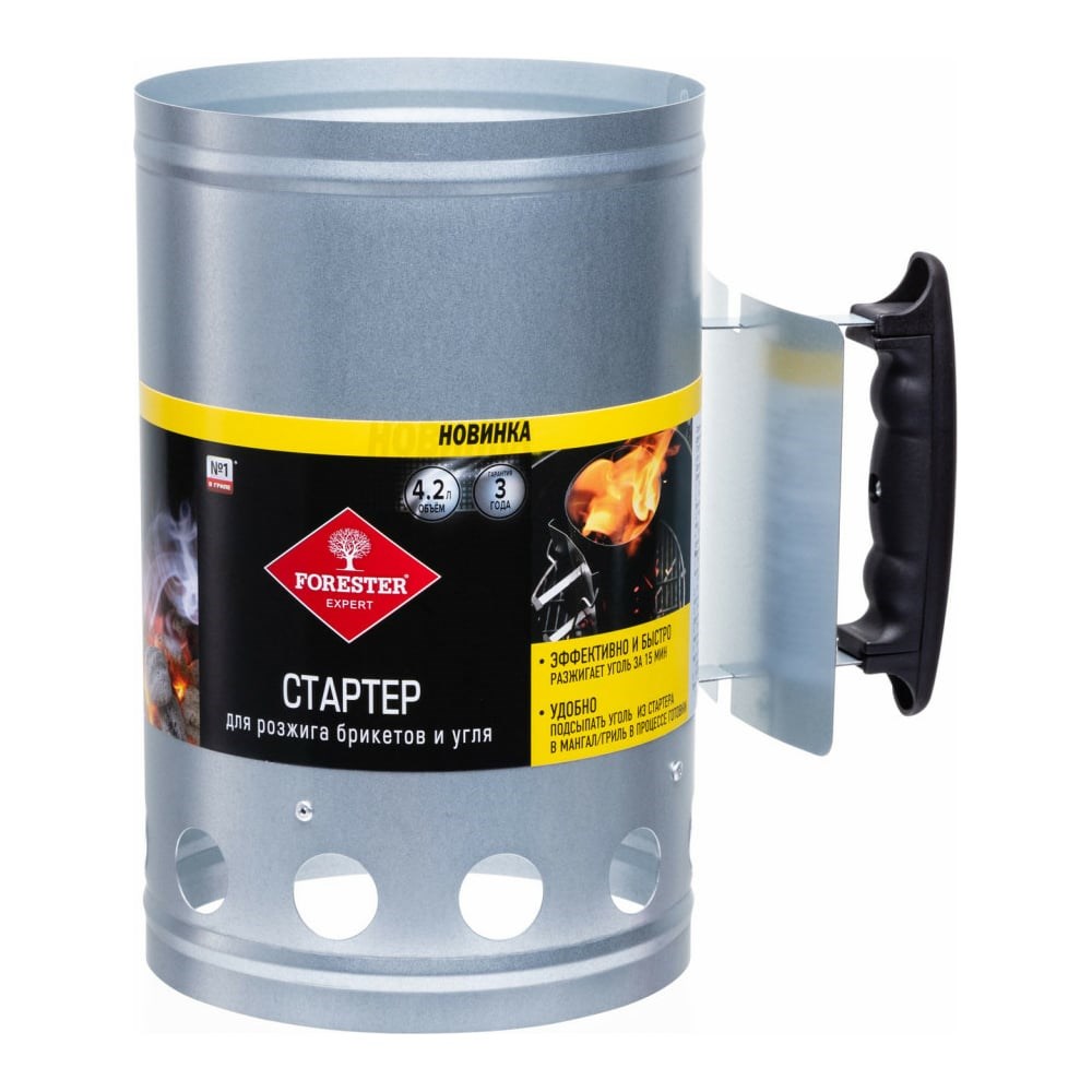 Стартер FORESTER Base, 17х27 см, 0.5 мм 4 ST-1 предназначен для розжига брикетов и угля. Позволяет всего за 15 минут эффективно разжечь уголь. Конструкция стартера позволяет удобно подсыпать уголь из стартера в мангал или гриль в процессе готовки. Изготовлен из стали с коррозионностойким покрытием и пластика. Вместимость модели составляет 4.7 литра.