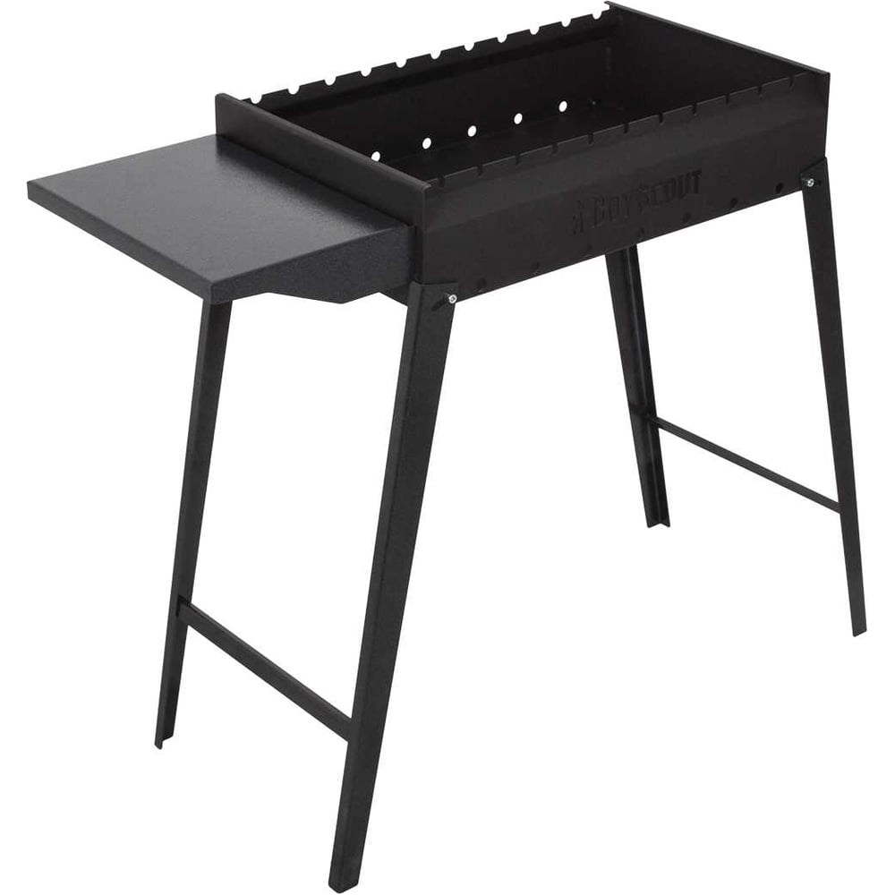 Стационарный мангал BOYSCOUT 850x380x810 мм, сталь 2 мм 61615 предназначен для приготовления пищи на древесных углях вне помещений, на открытом воздухе, с использованием шампуров, решеток, и других приспособлений. Мангал имеет термостойкое покрытие и сборно-разборную конструкцию для удобства транспортировки и хранения. Боковой столик может использоваться для хранения и размещения продуктов и посуды. На топке присутствуют ребра жесткости, которые препятствуют её деформации, также топка оснащена специальными пазами для установки шампуров и отверстиями внизу - для оптимальных условий горения и жара углей.