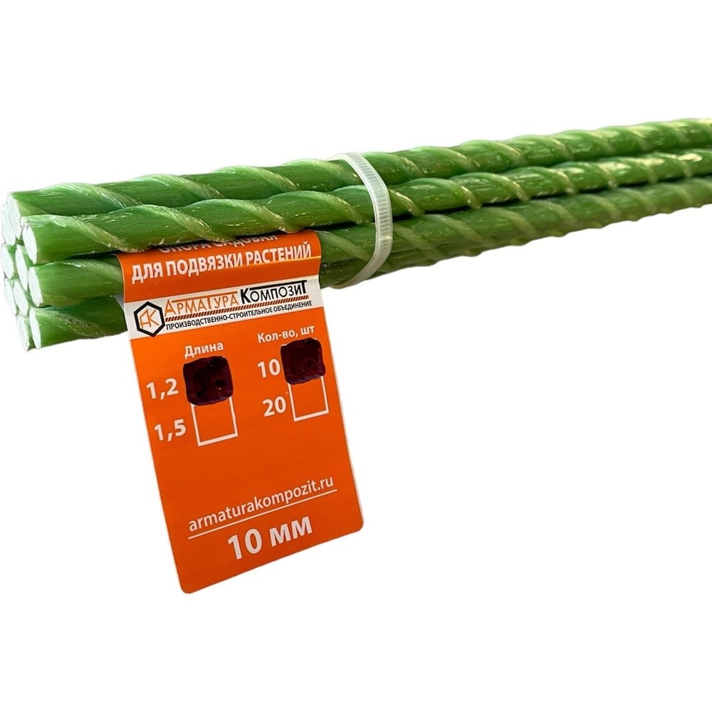 Стеклопластиковая садовая опора Арматура Композит 10 мм, 10 штук по 1.2 м 4660228920380 предназначена для подвязки садовых растений. Опора защищает стебли растений от поломки при сильном ветре или от тяжести плодов. С их помощью укрепляют травянистые виды культур, у которых образуются крупные цветки и плоды. Согласно правилам комфортного роста и развития растений на каждый саженец или выращиваемый кустик устанавливают индивидуальный колышек. Чтобы правильно привязать саженец любой культуры, нужно использовать веревку либо канатик. Ею привязывают главный стебель к колышку, концы скрещивают либо завязывают восьмеркой.