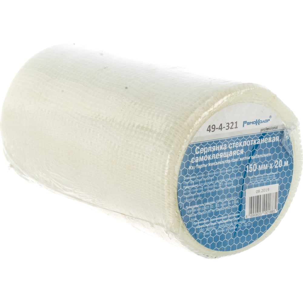 Стеклотканевая самоклеющаяся серпянка РемоКолор 49-4-321 применяется при армировании трещин и стыков во время проведения штукатурных работ. В качестве материала изделия используется стекловолокно с нанесенным на одну сторону клеевым слоем. Размеры - 20 м х 150 мм.