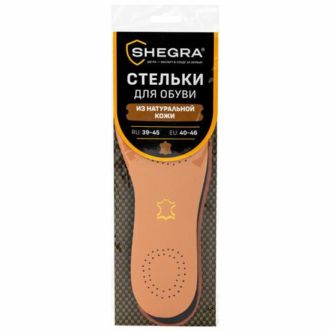Стельки для обуви из натуральной кожи с двумя амортизаторами, размер RU 39-45 / EU 40-46 с линиями выреза, SHEGRA (ШЕГРА), 700762