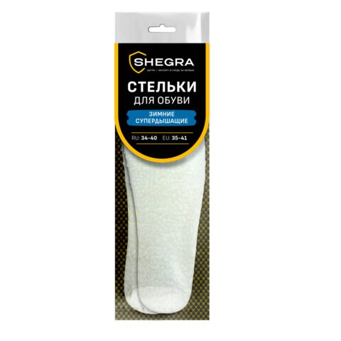 Стельки для обуви ЗИМНИЕ СУПЕРДЫШАЩИЕ, материал EVA, размер RU 34-40 / EU 35-41, с линиями выреза, SHEGRA (ШЕГРА), 700757