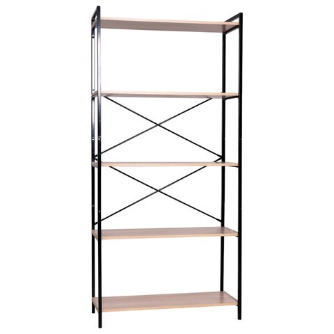 Стеллаж BRABIX "SMART SH-004", 790х360х1950 мм, ЛОФТ, 5 полок, металл/ЛДСП бунратти, каркас черный, 641944