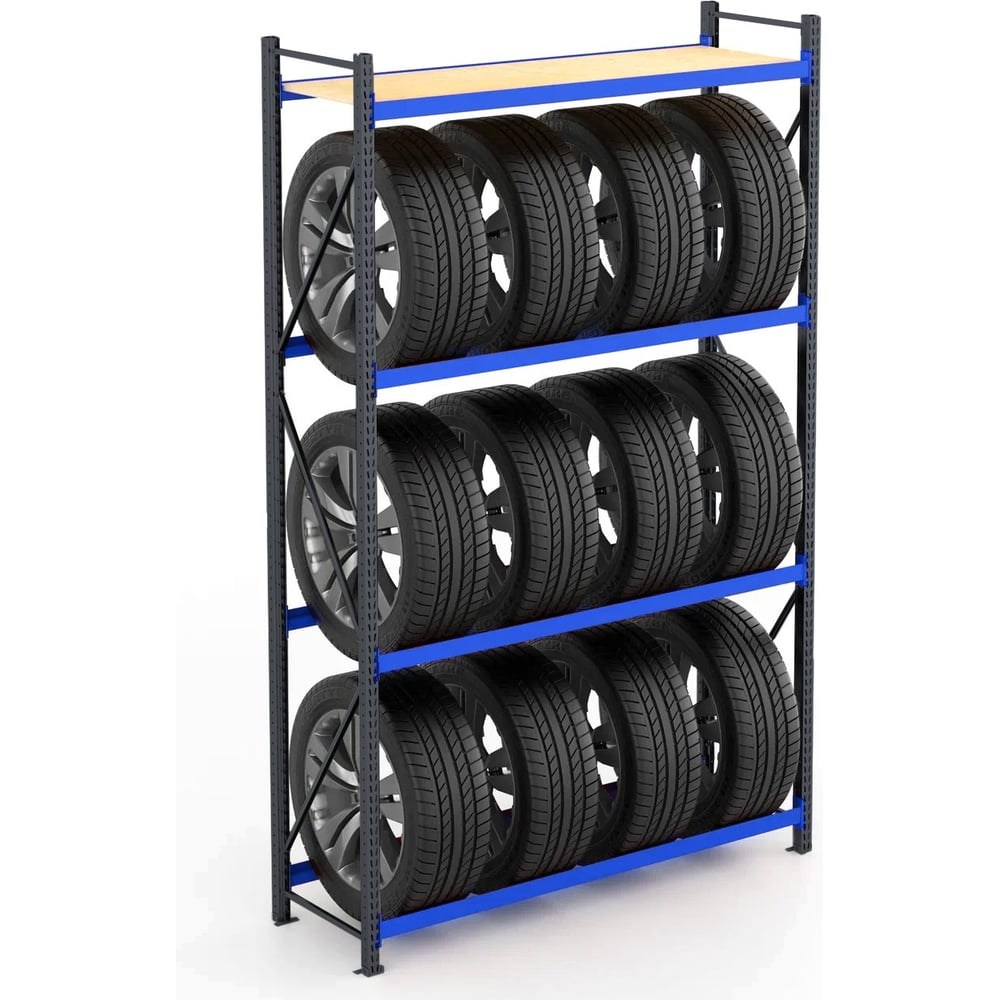 Стеллаж KlestO TGR 2031-412 1000704 - прочная и надежная конструкция для хранения товаров, автомобильных покрышек, документов и прочего. Распределенная нагрузка на ярус допускается до 500 кг. Корпус выполнен из металла, полки изготовлены из фанеры.