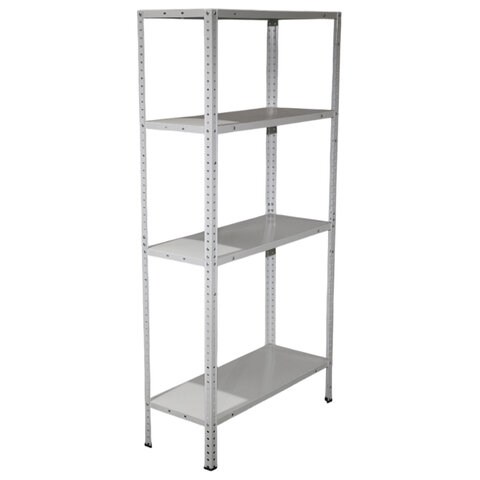 Стеллаж изготовлен из оцинкованной стали, что позволяет его использовать в помещениях с повышенной влажностью.