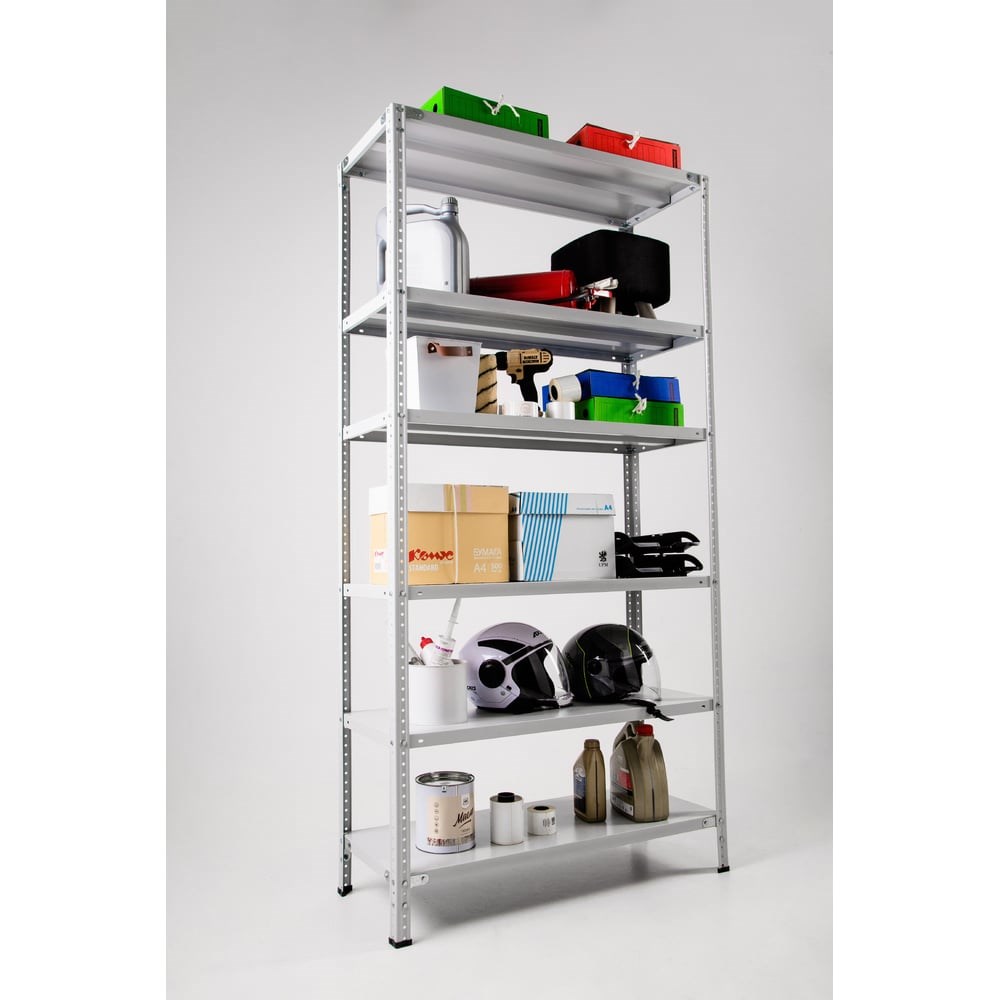 Стеллаж ООО ФУРАМА СТФ 2000х700х500 мм 6 полок СТФ207050-6 поставляется в разобранном виде. Модель включает в себя дополнительные углы, которые увеличивают жесткость конструкции. Уголки жесткости (16 шт.) крепятся только на верхнюю и нижнюю полку по 8 шт., полки между ними крепятся на болты и гайки. Можно менять положение полок с шагом в 25 мм. Каждая стойка в 1000 мм (при создании стойки 2 метра) монтируется соединителем с помощью болтов и гаек. Нагрузка на стеллаж: до 750 кг. Нагрузка на полку: до 100 кг. Полки оснащены ребром жесткости. Подпятники не регулируемые. К данной модели подходят полки арт. СТФ-П7.5.