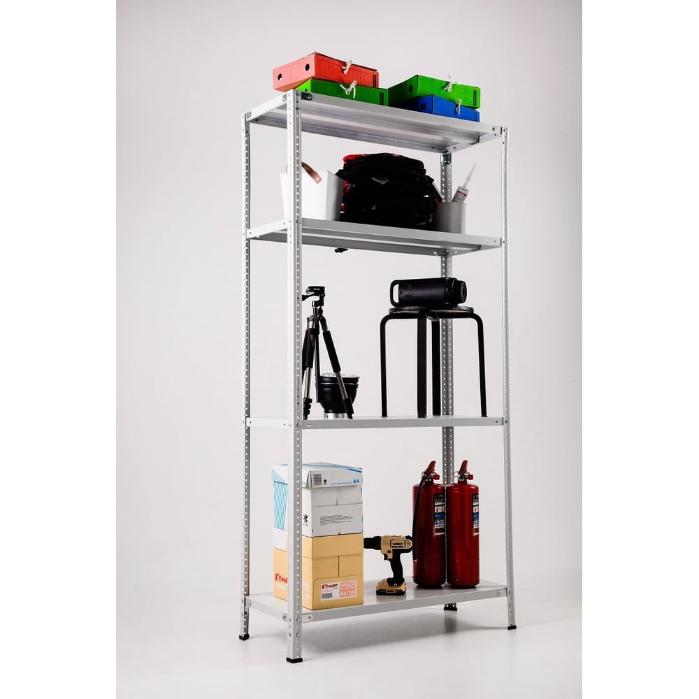 Стеллаж ООО ФУРАМА СТФЛ 1800х700х600 мм 4 полки СТФЛ187060-4 поставляется в разобранном виде. Модель включает в себя дополнительные углы, которые увеличивают жесткость конструкции. Уголки жесткости (16 шт.) крепятся только на верхнюю и нижнюю полку по 8 шт., полки между ними крепятся на болты и гайки. Можно менять положение полок с шагом в 25 мм. Каждая стойка в 1000 мм и 800 мм (при создании стойки 1,8 метра) монтируется соединителем с помощью болтов и гаек. Нагрузка на стеллаж: до 500 кг. Нагрузка на полку: до 100 кг. Полки оснащены ребром жесткости. Подпятники не регулируемые. К данной модели подходят полки арт. СТФ-П7.6.