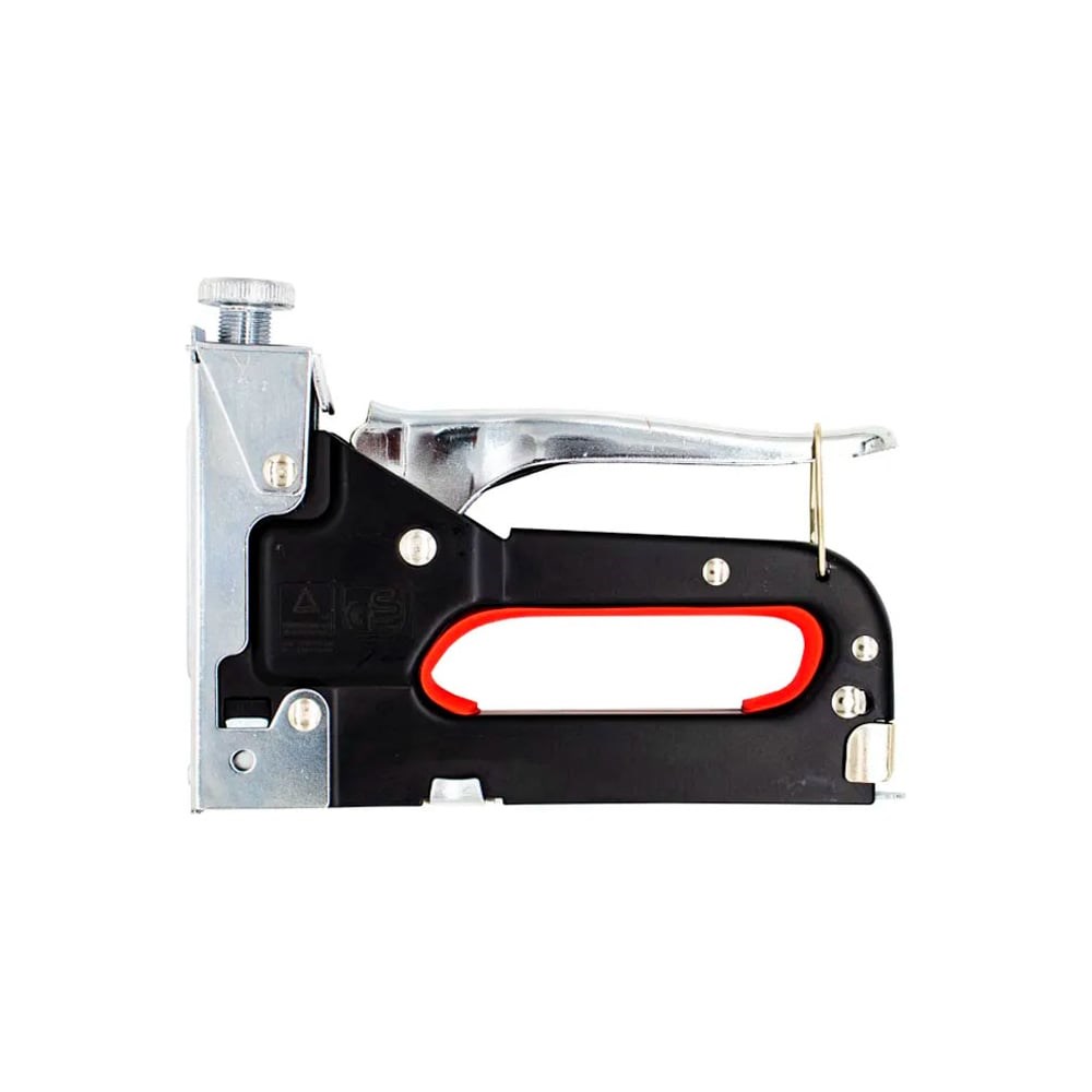 Скобозабивной степлер предназначен для закрепления обивки мебели, проволочной сетки и строительства теплиц. Скобы легко загружаются в магазин, что обеспечивает быстроту и дополнительный комфорт в работе. Модель удобна в обращении и отличается прочностью - корпус выполнен из стальных деталей, а рукоятка металлическая с покрытием.