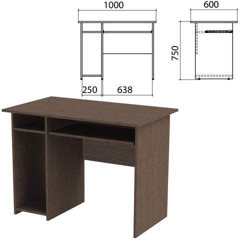 Стол компьютерный "Канц", 1000х600х750 мм, с тумбой, цвет венге (КОМПЛЕКТ)