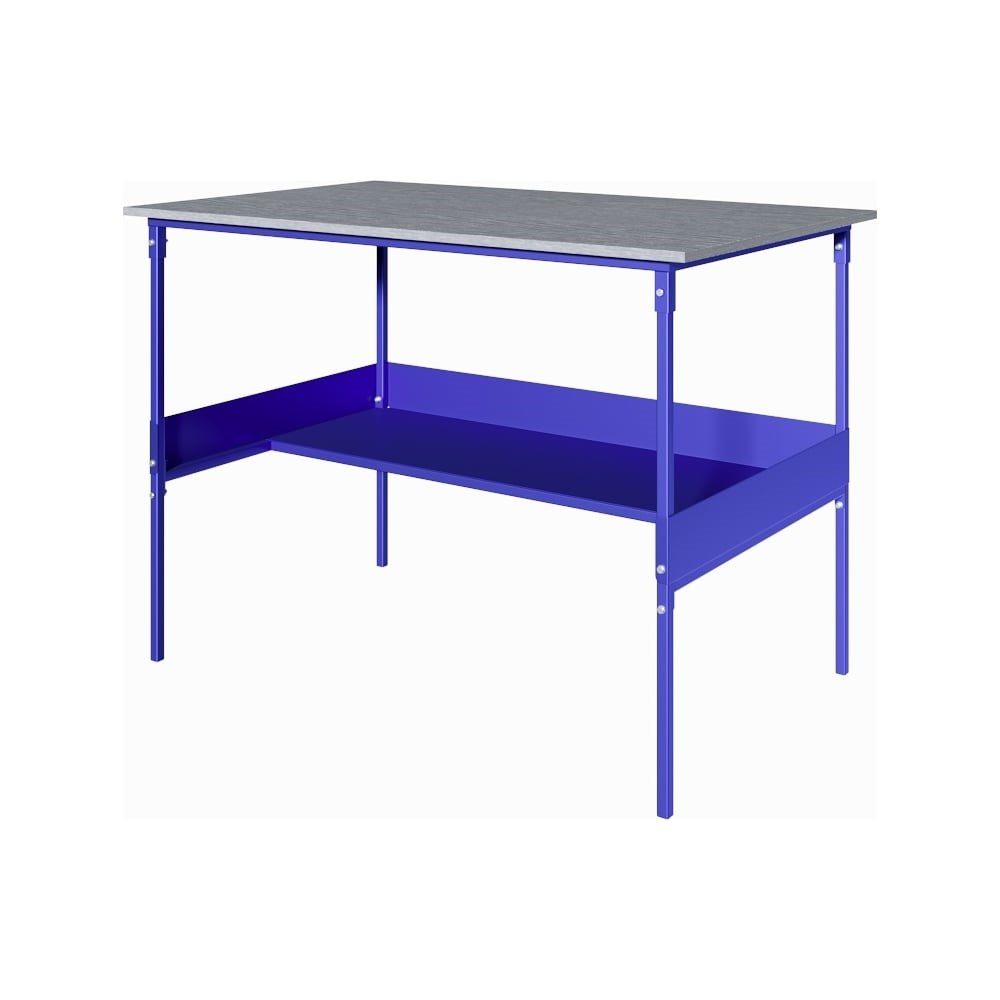 Металлический стол предназначен для работ в гараже, сарае, слесарной мастерской, на производственной площадке.Разборная конструкция позволяет легко перевозить изделие. Простая конструкция обеспечивает легкую сборку и долговечность.Порошковое полимерное покрытие защищает конструкцию от негативного влияния внешней среды.Борт высотой 10 см по боковым и задней стенке нижней полки не дает упасть вещам, глубина полки достаточная для размещения коробок и при этом не мешает ногам.