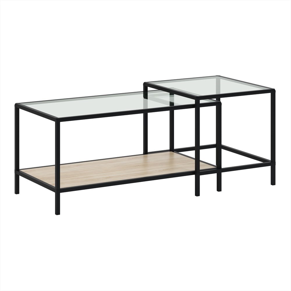 Стол НАЙДИ ДУЭТ, черный муар, ЛДСП дуб сонома, стекло LKS-553025 имеет каркас из алюминиевого профиля с полимерно-порошковым покрытием. Столешница 16 мм из ЛДСП и из закаленного стекла 4 мм.Стол Дуэт состоит из 2 столов. Размеры: 941х488х457 мм, 488х544х500 мм.Изделие упаковано в коробку в разобранном виде. Рекомендуется собирать по инструкции с помощью молотка с резиновым наконечником.