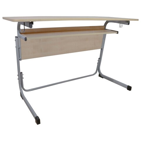 Стол-парта 2-местный регулируемый "Атлант", 1200х500х640-760 мм, рост 4-6, серый каркас, ЛДСП клён