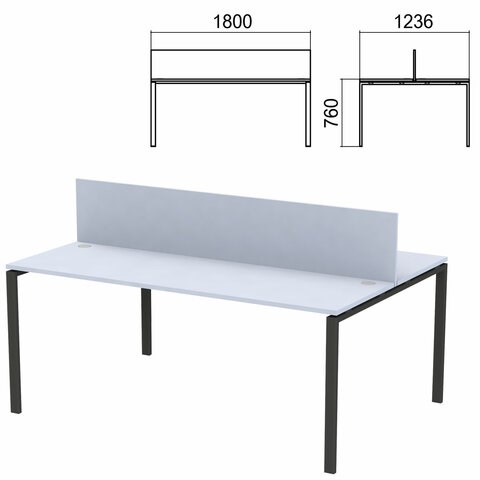 Стол письменный 2-МЕСТНЫЙ на металлокаркасе "Арго", 1800х1236х760 мм, серый (КОМПЛЕКТ)