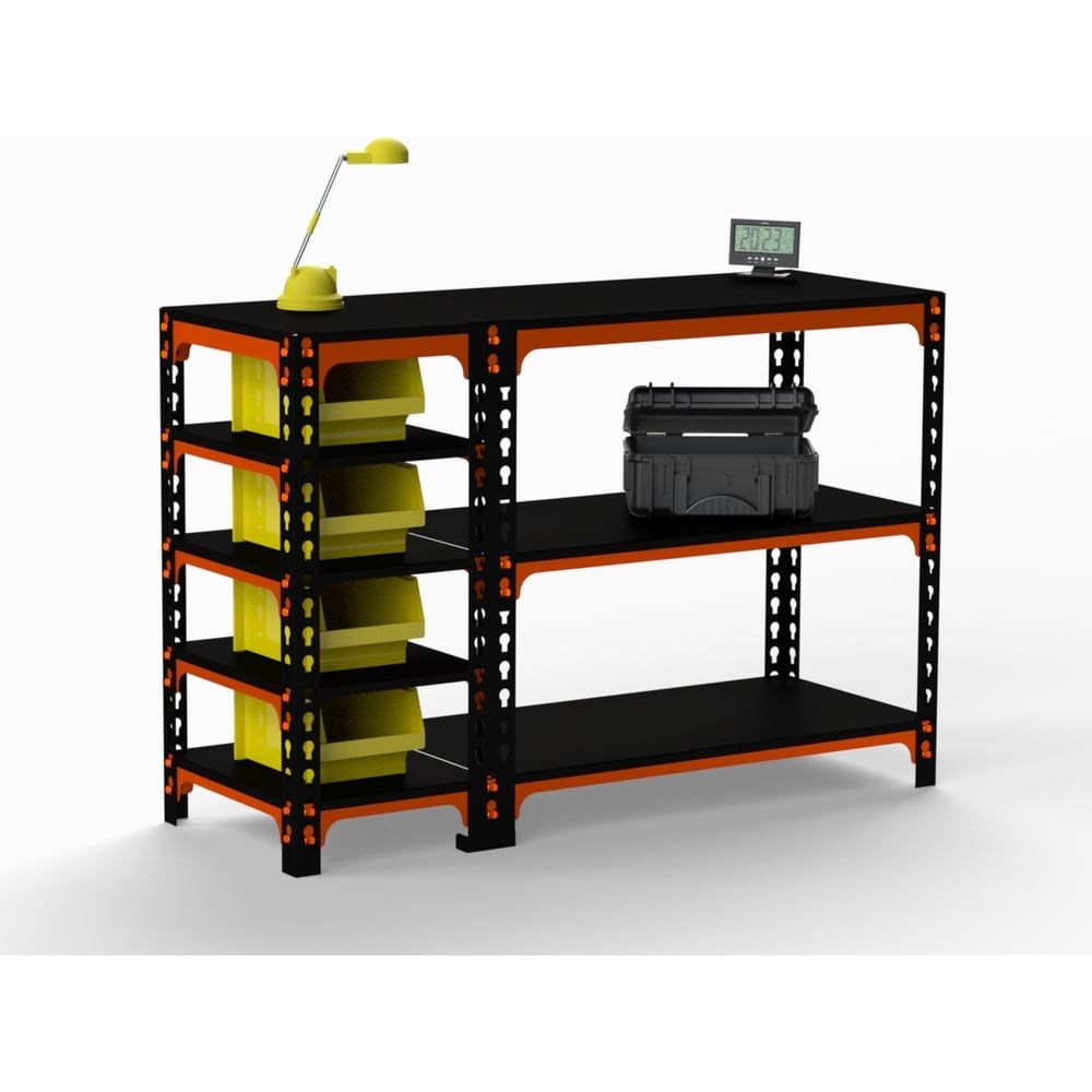 Стол-верстак предназначен для удобной организации отдельного рабочего места на производствах, складах, гаражах, мастерских, и на других объектах. Модель оснащена прочными опорами из углового профиля. Имеется специальная перфорация, при помощи которой можно менять положение полок. Столешница и полки выполнены из стали толщиной 1.5 мм, а траверсы и стойки из стали толщиной 2 мм. Стал-верстак можно использовать в столярных и слесарных мастерских. Изделие обеспечивает рациональное хранение различных предметов на полках. Максимум распределённой нагрузки на весь верстак составляет до 350 кг. Максимум распределённой нагрузки на полку составляет до 100 кг.