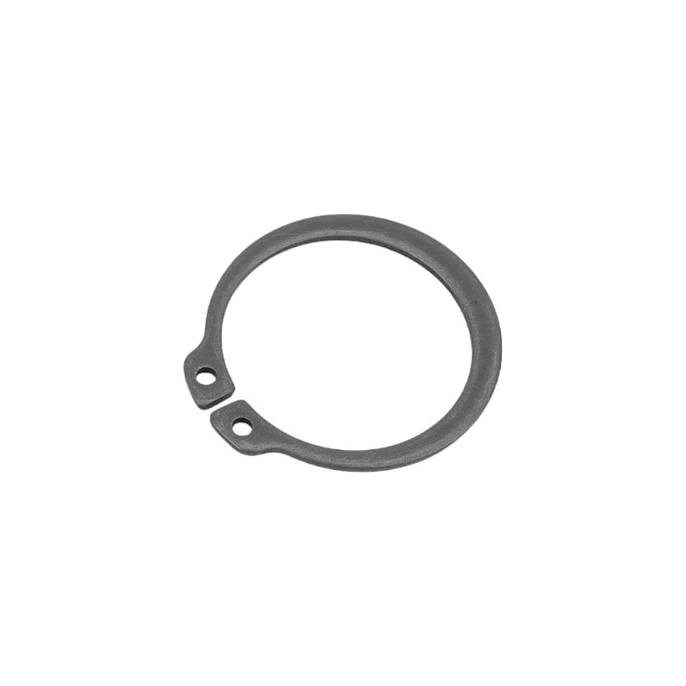 Наружное стопорное кольцо выполнено из высокопрочной гибкой стали, используется для фиксации деталей на валу. Имеются отверстия для разведения в стороны при помощи съемника. Защитное покрытие предохраняет изделие от коррозии.