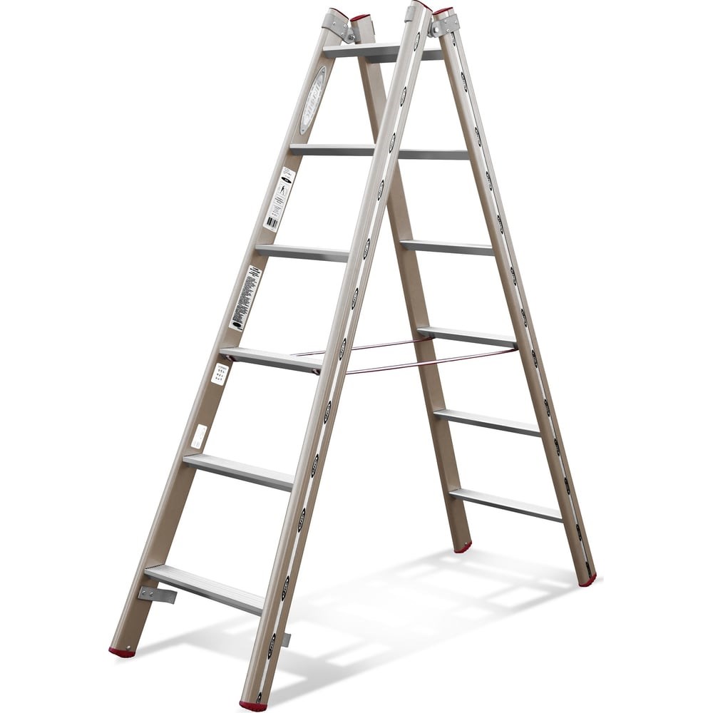 Стремянки серии Атлант изготовлены из окрашенного алюминия овального профиля.Ступени выполнены из ребристого профиля шириной 63 мм, что особенно удобно при длительной работе на высоте.Опоры выполнены из полимера, устойчивого к истиранию, и перепадам температур от -40 до +50 градусов С.
