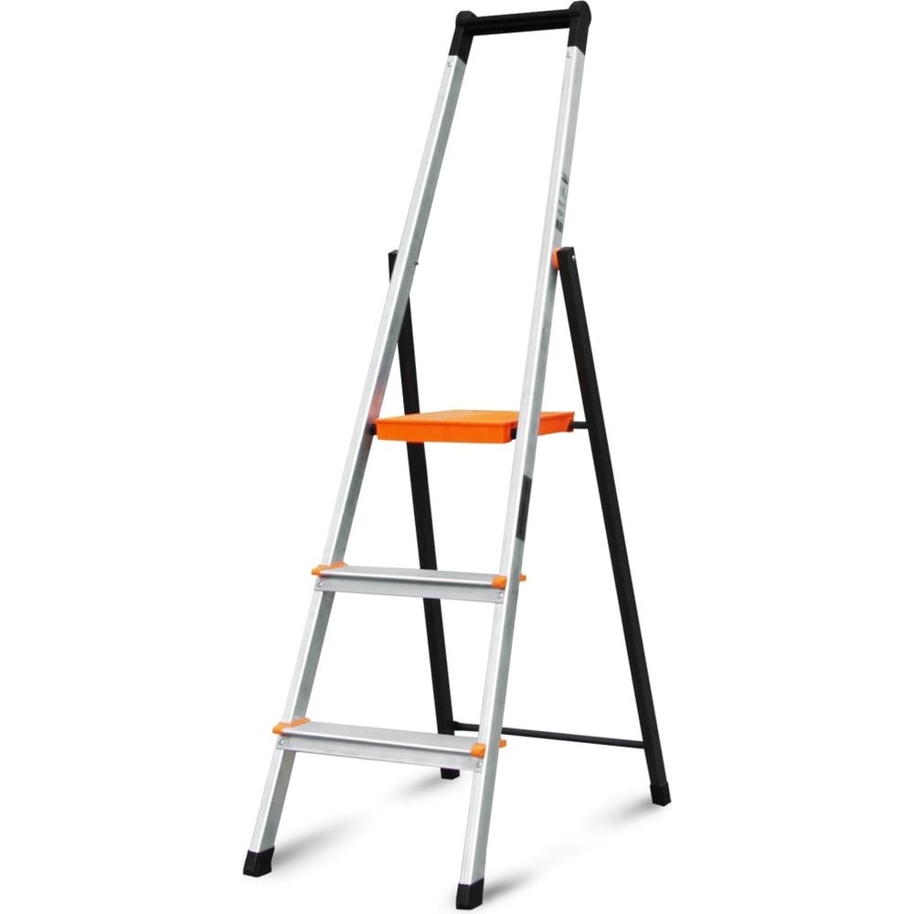Стремянка Эйфель Фаворит 103 выполнена из алюминия, отличается небольшим весом и надежностью. Оснащена площадкой для обеспечения комфорта при длительной работе. Пригодится в быту. Стремянка не будет скользить по поверхности благодаря двухкомпонентным опорам на ножках.