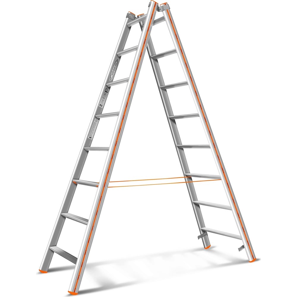 Стремянка Эйфель Комфорт-Профи 208 - это двухсекционная лестница, имеющая 4 точки опоры, отличающаяся устойчивостью даже на скользкой поверхности. Оснащена ступенями с рифленой поверхностью - для безопасного спуска/подъема.Стремянка подходит как для профессиональных работ, так и для работ в быту.Корпус выполнен из алюминиевого профиля овального сечения. Такой профиль выдерживает большие нагрузки, чем прямоугольный. Его удобно держать при переносе лестницы и комфортно держаться при подъеме-спуске.Ступени выполнены из профиля шириной 63 мм с глубокой насечкой. Они располагаются строго горизонтально при приведении лестницы в рабочее положение. Комфортная работа на стремянке с широкими ступенями особенно ощущается при длительном нахождении на высоте.Опоры выполнены из полимера, устойчивого к истиранию и температурам в диапазоне от -40 до +50 градусов С.Модель имеет двойные фиксаторы-ловушки, скрепляющие секции при хранении или транспортировке.