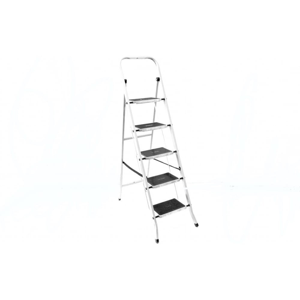 Стремянка стальная Class Plus 5 ступеней (Класс Плюс 5) с широкими ступенями 123305 - с полимерным покрытием. Стремянка используется в быту, на производстве. Широкие ступени с пластиковыми накладками позволяют комфортно поставить ногу. В сложенном состоянии стремянка компактна, что удобно при хранении. Устойчивость обеспечивается противоскользящими заглушками.