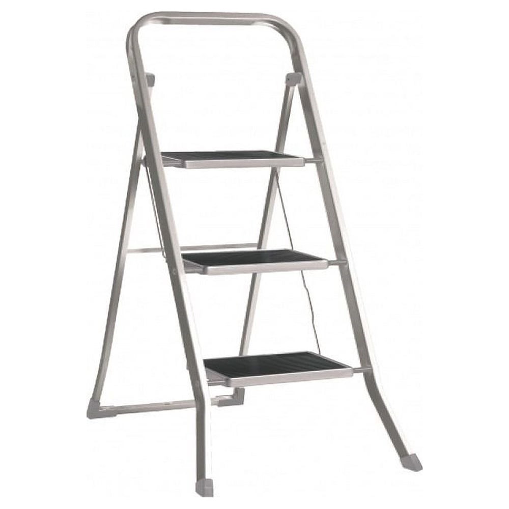 Стремянка для бытовых и хозяйственных нужд 3х ступенчатая -противоскользящие рельефные накладки -широкие ступени 20х30 (см) -габариты в сложенном виде: 105х42х3 (см) -рабочая высота – 267,5 см - высота до верхней ступени: 67,5 см вес: 5,8 (кг) Срок эксплуатации без ограничений. Максимально удобная для бытовых, строительных и ремонтных работ