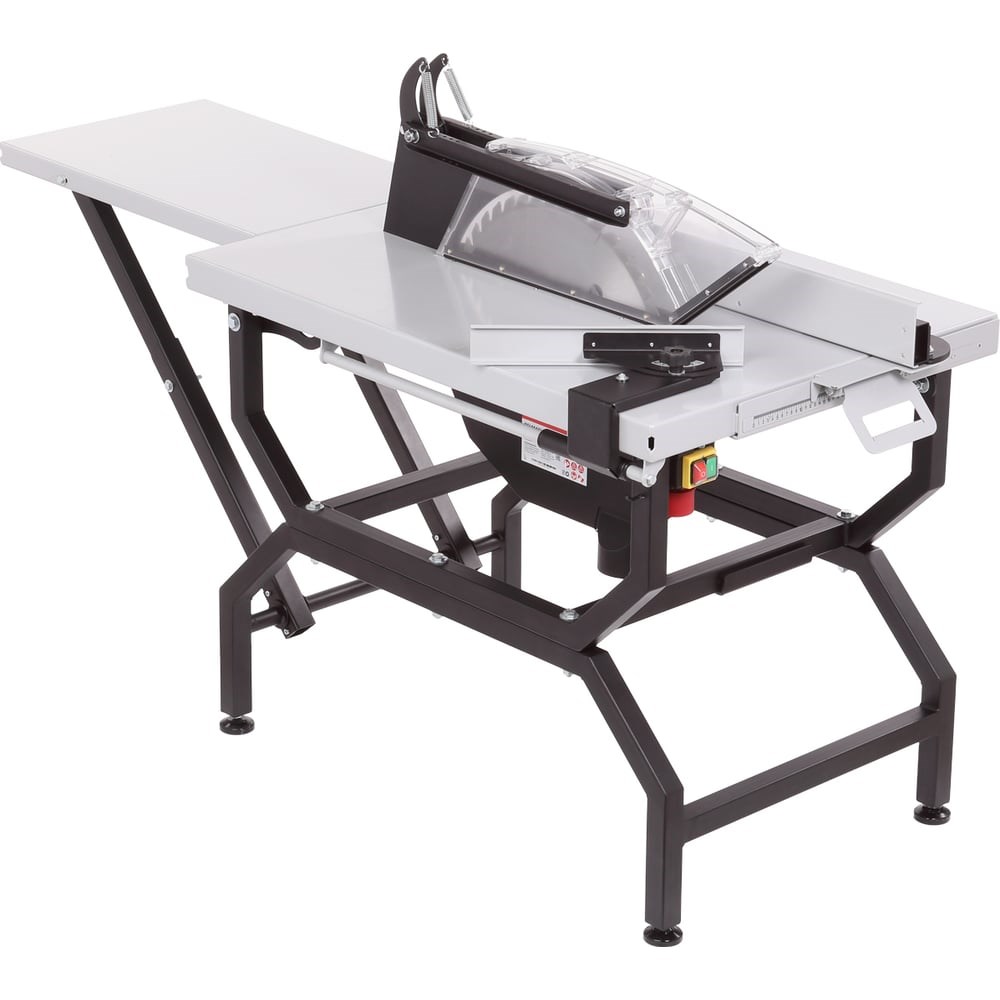 Станок предназначен для обработки древесины (фанеры, древесно-стружечных плит и т.п.) пилением, с целью придания им необходимых форм и размеров, с ручной подачей заготовки. Представляет собой электромеханическое устройство. В качестве привода используется асинхронный электродвигатель. Пильный диск установлен на выходном конце вала двигателя. Питание осуществляется от трехфазной сети переменного тока (400 В) с защитным (заземляющим) проводом. Имеется встроенное устройство отключения при перегреве двигателя. Выключатель установлен на кронштейне, обеспечивая доступное и безопасное включение и выключение станка. Основной стол имеет размер 1050×750 мм, выполнен из листовой стали. Имеет жесткую конструкцию за счет дополнительных ребер. Станок оборудован мерной шкалой, указывающей ширину распиливаемой заготовки. При распиловке широкоформатных и длинных заготовок станок можно использовать раскладной дополнительный стол, его размер составляет 700×450 мм. Для ориентации заготовки относительно пильного диска и обеспечения ее прямолинейного движения станок оснащен упором. Для поперечной распиловки под углом используется угловое приспособление. Для безопасной работы с короткими и узкими заготовками используется толкатель. В качестве режущего инструмента используются пильные диски диаметром 500 мм с посадкой 30 мм. Максимальная высота распиливаемой заготовки - 152 мм (нерегулируемая). С целью предотвращения заклинивания диска во время реза в конструкции предусмотрен расклинивающий нож.