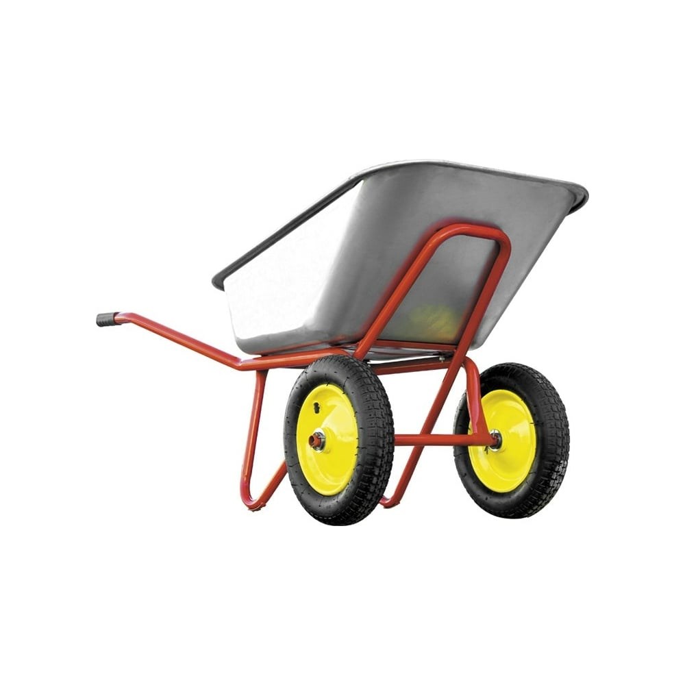 Строительная тачка Yard двухколесная, грузоподъемность 240 кг, объем 110 л 66-9-200 предназначена для перевозки различных грузов при проведении строительных и сельскохозяйственных работ. Легкая и маневренная двухколесная тачка позволяет удобно транспортировать грузы по любой поверхности. Рама состоит из двух полурам и окрашена порошковой эмалью, что увеличивает эксплуатационный ресурс изделия. Кузов изготовлен из оцинкованной стали, защищенной от коррозии. Закругленные борта препятствуют выпадению содержимого. Тачка комплектуется пневматическими колесами с камерой. Наличие двух шариковых подшипников обеспечивает легкость перемещения тачки с грузом.