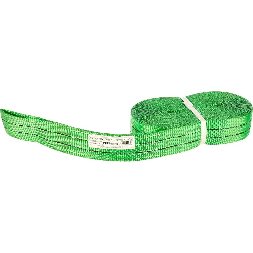 Строительная лента с петлей (6т, 15м, 60мм, зеленая) СТРОП-ПРО SP05112 - грузоподъемное приспособление для погрузочно-разгрузочных работ. Лента легко складывает и не занимает много места во время хранения. Синтетические нити придают изделию гибкость и высокую несущую способность.