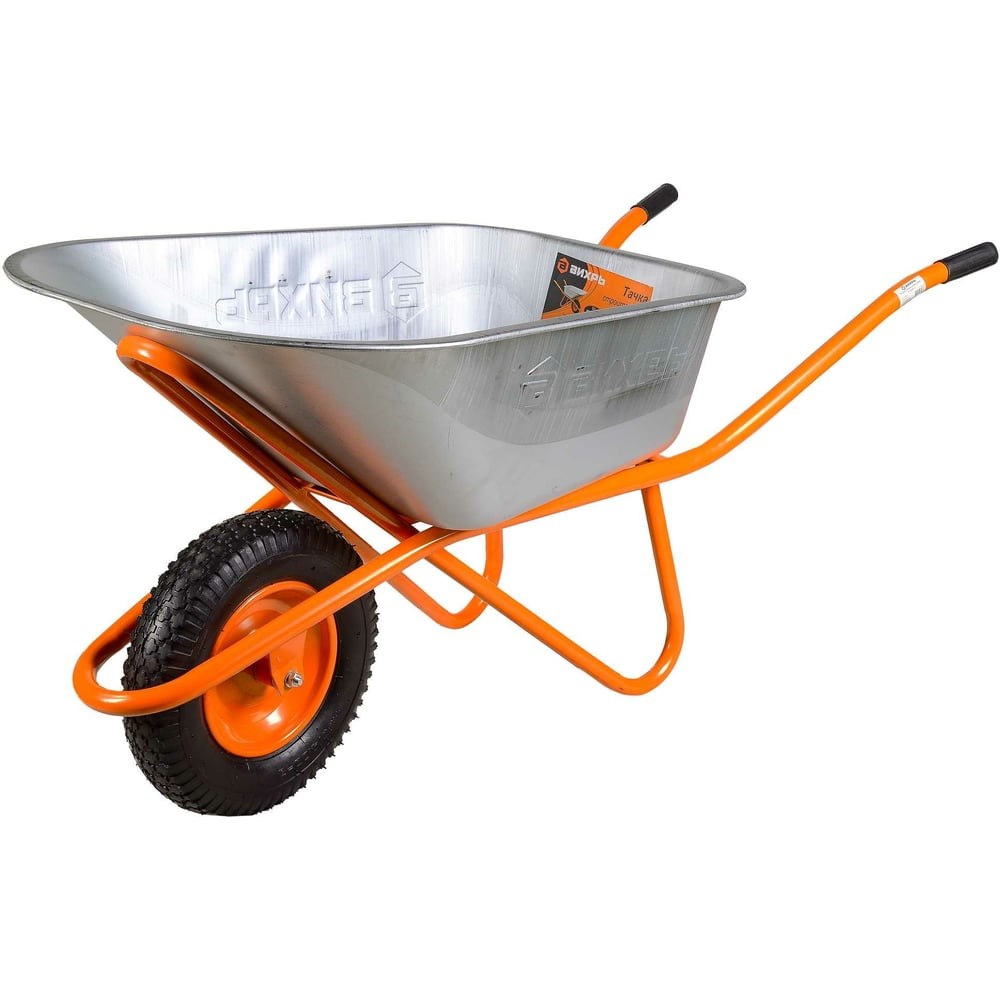Строительная тачка Вихрь Т110-1 используется на приусадебных участках, строительных площадках, при проведении ремонтных работ. Кузов тачки изготовлен из оцинкованной стали толщиной 0,8 мм. Он устойчив к образованию коррозии и деформациям, обеспечивает длительный срок службы. Объем кузова вмещает до 110 л, позволяя перевозить сыпучие материалы. Металлический каркас тачки имеет грузоподъемность до 320 кг. Строительная тачка оснащена двумя опорами для вертикального положения во время стоянки. Прорезиненные рукоятки обеспечивают надежный хват, препятствуют соскальзыванию рук.Одноколесная модель Вихрь Т110-1 отличается маневренностью, подходит для использования на садовых участках малой площадью. Наличие одного колеса упрощает управление тачкой на узких извилистых дорожках, позволяет легко разворачиваться на ограниченном пространстве. Тип колеса: 4.80-8, 380 мм, оснащено протектором. Такое колесо обеспечивает тачке более мягкий ход, гасит толчки и удары во время транспортировки грузов по неровной поверхности. Колесо установлено на подшипнике. Данный тип крепления устойчив к интенсивным нагрузкам, что позволяет перевозить тяжелые грузы.