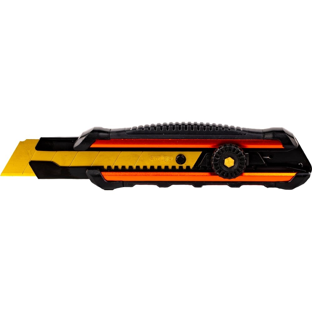 Строительный нож AMIGO 25 мм 77553 имеет алюминиевый двухкомпонентный корпус. Надёжная и безопасная конструкция Покрытие TIN обеспечивает высокую прочность лезвия, защиту от коррозии и увеличивает срок службы до 10 ти раз Лезвие из стали SK5 с покрытием TiN