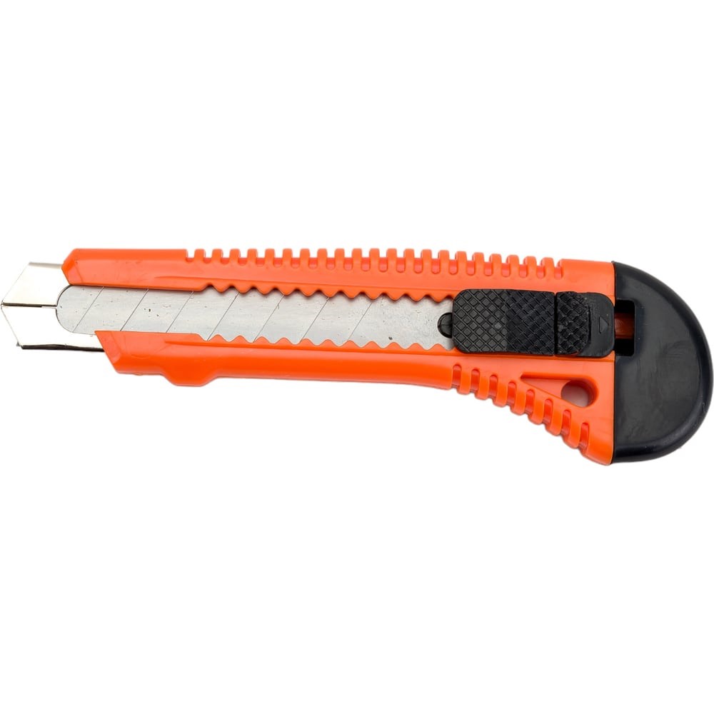 Нож строительный с отламывающимся лезвием отлично подходит для резки гипсокартона, линолеума, резины и других жестких материалов. Корпус покрыт антискользящим материалом. Нож оснащен надежной металлической направляющей и трищеточным фиксатором для надежной фиксации.
