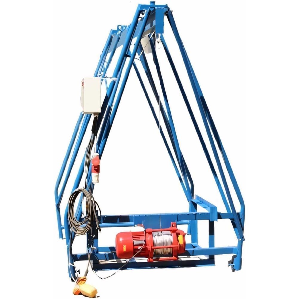 Строительный подъемник Комплан типа Умелец модель ПС-500 без груза 4627201549716 используют на складах и строительных объектах при выполнении ремонтных и погрузочных работ. Запуск лебёдки происходит с помощью автоматического переключателя на пульте, а управление осуществляется с кнопочного тельферного поста. Модель оборудована колесами с фиксаторами на задних стойках и регулировочными винтовыми опорами на передних стойках, что значительно упрощает транспортировку и установку агрегата на рабочей площадке.