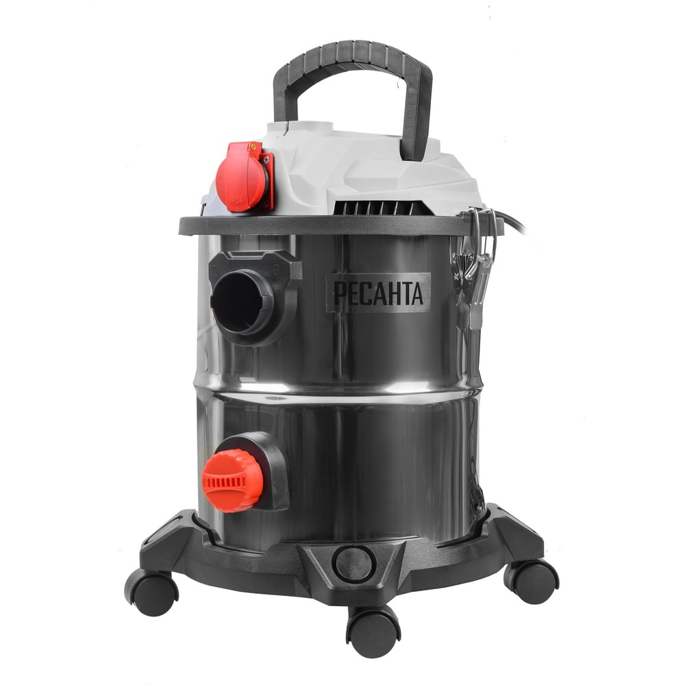 Строительный пылесос Ресанта ПС-1500/20 мощностью 1500 Вт эффективен в быту и профессиональной деятельности. Предназначен для сухой и влажной уборки поверхностей. Скорость воздушного потока 40 л/сек способна удалять не только мусор, но и опилки, мелкие камни, жидкости. Встроенная розетка на корпусе позволяет запускать пылесос одновременно с рабочим инструментом мощностью 100-2000 Вт. Емкость бака составляет 20 л. В комплект входят 2 фильтра, применяемые в зависимости от поставленных задач. Для влажной уборки и всасывания воды предназначен фильтр из поролона. При сухой уборке необходим многоразовый HEPA фильтр. При этом внутрь контейнера устанавливается одноразовый бумажный или многоразовый тканевый мешок для мусора. Строительный пылесос Ресанта ПС-1500/20 работает в двух режимах: обычное всасывание и синхронная работа с дополнительно подключенным оборудованием, таким как перфоратор, дрель, лобзик или шлифмашинка. Функция сбора воды позволяет осушать емкости или удалять пролитую жидкость. Режим выдувания поможет быстро убрать мусор с поверхности или прочистить предмет от пыли. Функциональность прибора обеспечивается насадками, входящими в комплектацию. В сочетании с гибким 3-метровым гофрированным шлангом они гарантируют качественную уборку на любых поверхностях, а также в труднодоступных местах. Трубки-удлинители изготовлены из прочного пластика. Они увеличивают радиус рабочей зоны. Подвижные колеса обеспечивают легкость перемещения.