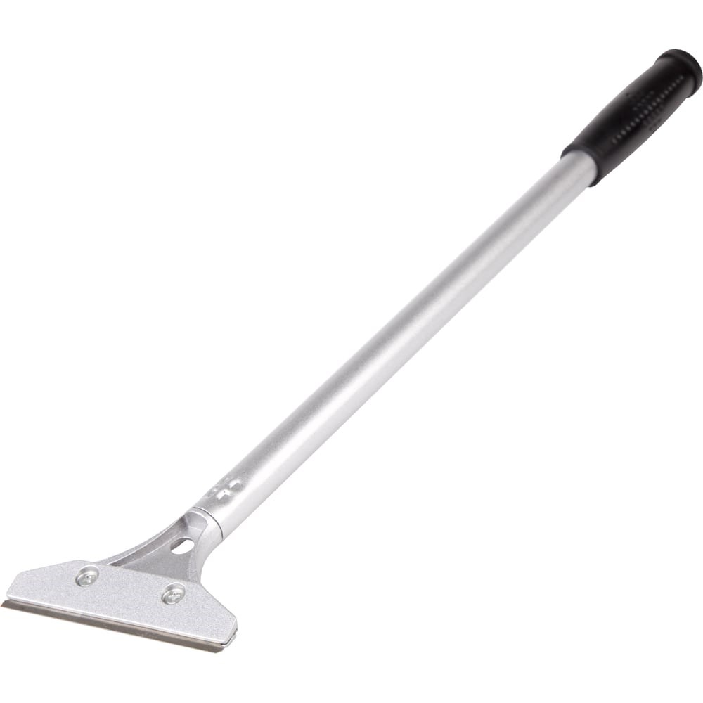 Скребок применяется для очистки поверхностей от различных загрязнений, в том числе краски. Подойдет для любых ремонтно-строительных работ, для удаления обоев со стен, клея с напольной плитки, напольных покрытий, различных эпоксидных, пластиковых и прочих материалов. Скребок изготовлен из стали. Лезвие надежно фиксируется. Прочная металлическая ручка длиной 40 см, покрытая противоскользящим пластиком, позволяет работать в труднодоступных местах. Возможность замены лезвий обеспечивает долгий срок службы инструмента.