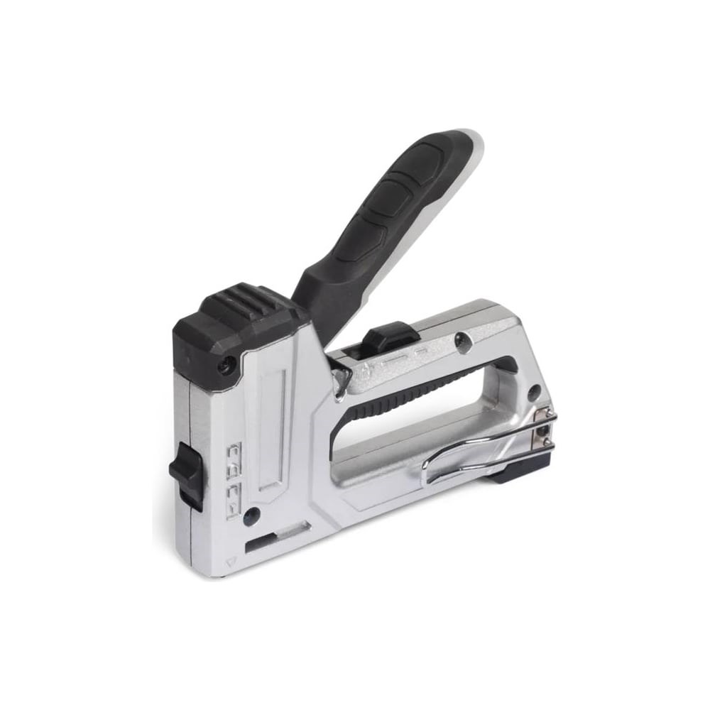 Строительный степлер КВТ СТС-4 79855 предназначен для скрепления между собой различных материалов. Подходит для использования П и U-образных скоб и гвоздей (Т-образной формы). Регулировка силы удара позволяет выбирать оптимальные параметры под разный тип материала. Прочный корпус изготовлен из алюминия и имеет малый вес. Это придает удобство и легкость при продолжительных работах.