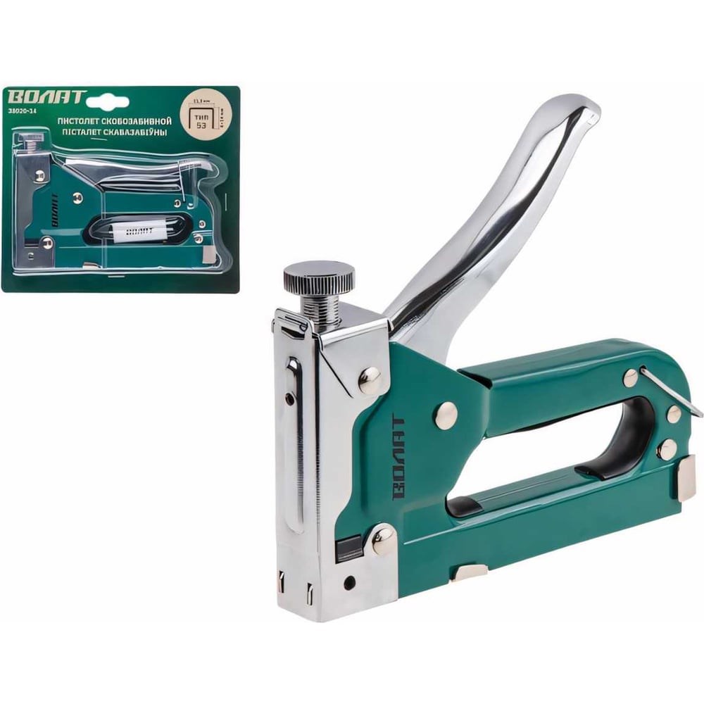Степлер ВОЛАТ строительный 38020-14 служит для стягивания листовых материалов или приклепывания ткани и тонкой древесины к профильному основанию. Инструмент обладает высокой прочностью. Благодаря прочному корпусу легко справляется с большой нагрузкой при забивании больших скоб