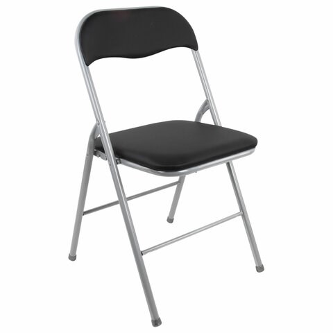 Стул складной BRABIX "Golf CF-007", серебристый каркас, кожзам чёрный, 532891
