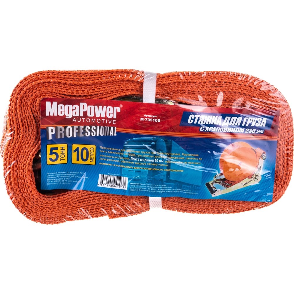 Стяжка для груза с храповиком MEGAPOWER 5000кг, лента 10м х 50мм M-73510S позволяет быстро закрепить практически любой груз для его безопасной перевозки или хранения. Стяжная лента изготовлена из долговечного, износостойкого и малорастяжимого материала. Храповой механизм исключает ослабление натяжения ленты. Прочные крюки обеспечивают надежную фиксацию ремня.