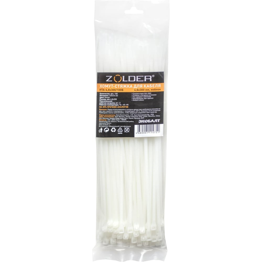 Стяжка для кабеля ZOLDER 300х4,8 мм нейлон, белая, 100 шт. HTA-4,8х300/100Б