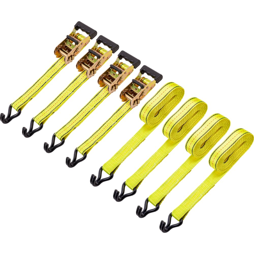 Стяжка для крепления груза DSV 38мм х 4,6м, 2,0т, 4шт R88031 выполнена из прочной полиэстеровой ленты. Двойные крюки с защитным покрытием и храповый механизм с удобной ручкой обеспечивают надежную фиксацию ремня. Материал обладает высокой грузоподъемностью, устойчивостью к растяжению, разрыву и атмосферным воздействиям (не намокает, не плесневеет).
