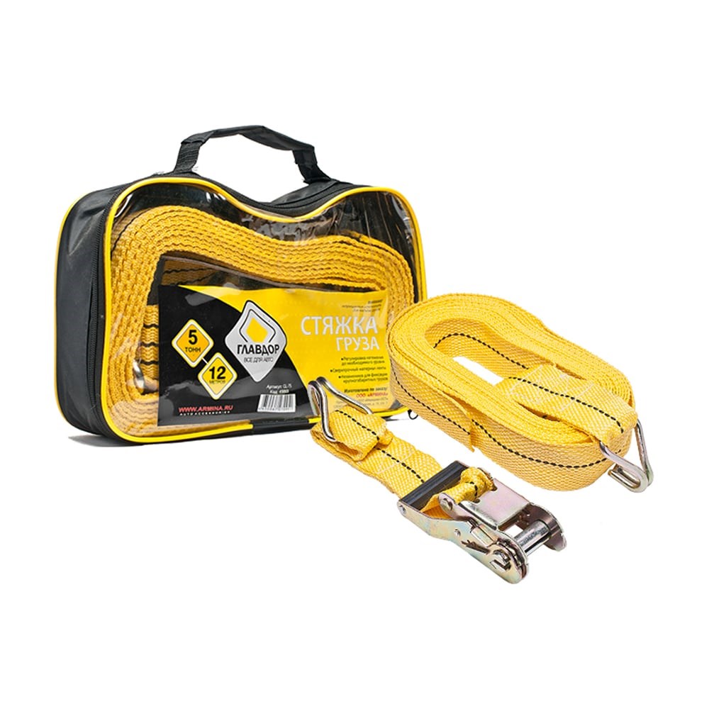 Стяжка груза ГЛАВДОР GL-77, 5 т, 12 м, в сумке /5 49871 обеспечивает надежную фиксацию и выдерживает максимальную нагрузку в 5000 кг. Подходит для работы с крупногабаритными грузами. Сверхпрочный материал устойчив к износу и обеспечивает долгий срок службы ленты.