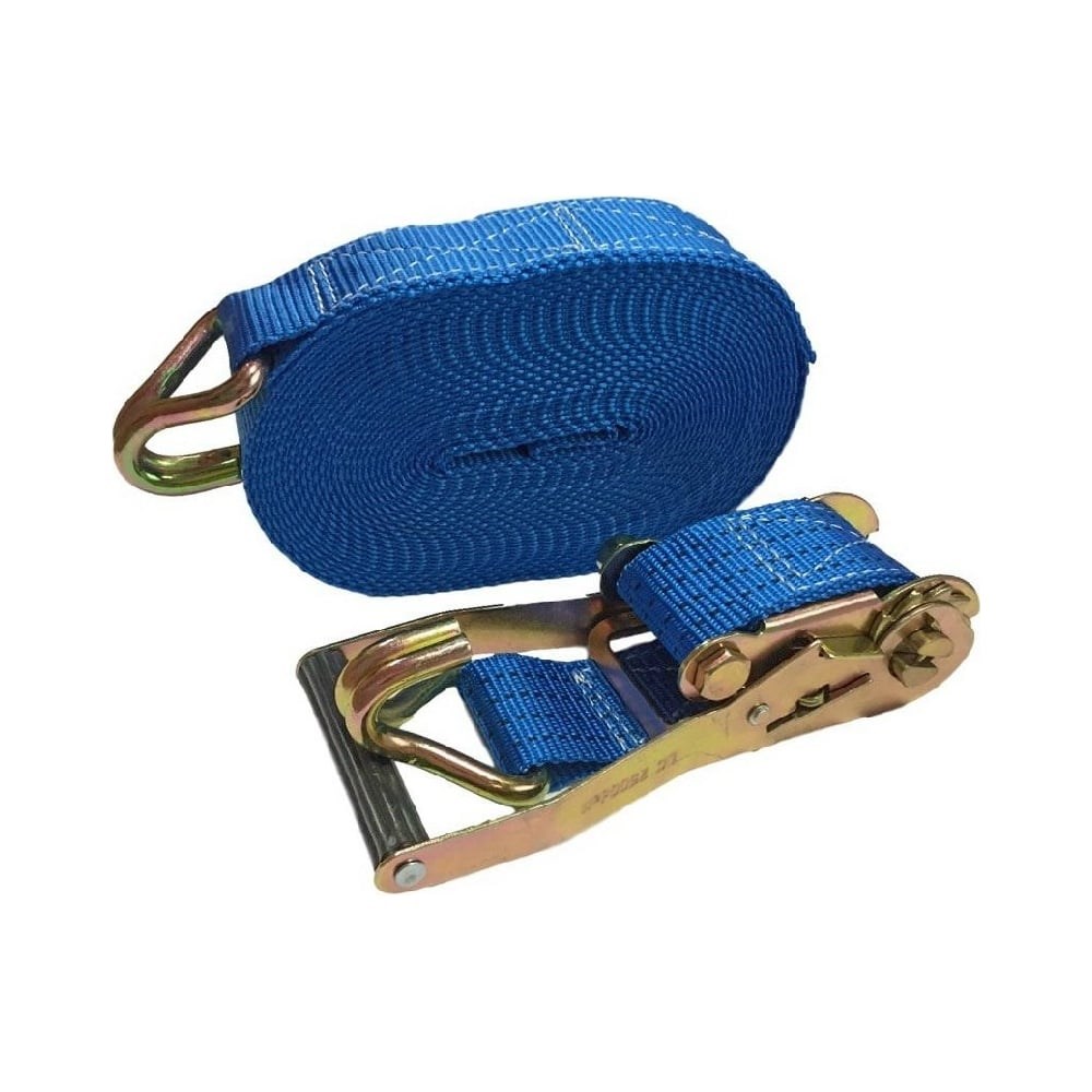 Стяжка крепления груза ДАЛИ-авто 2,5-5 тонн КРУГЛ. РУЧКА СИНИЙ DA-02267 служит для надежной фиксации груза, препятствует его смещению и повреждению. Храповый механизм оснащен рычажным приводом, что позволяет быстро зафиксировать и отрегулировать длину ремня. Лента изготовлена из полимерных материалов (капрон, нейлон и полиэстер), которые отличаются устойчивостью к стиранию и негативному воздействию окружающей среды. Крюки из анодированного металла не подвержены влиянию коррозии в течение всего срока службы стяжки.