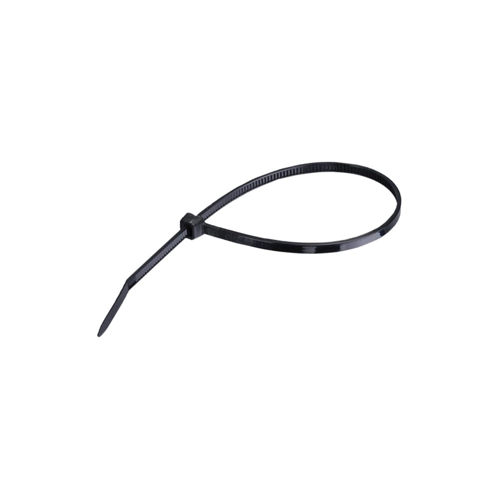 Нейлоновая стяжка SUPRLAN 4.8х300 мм черная UV 100pcs 06-1013 изготовлена из прочного и гибкого полимера. На конце изделия расположен специальный фиксатор. Особенности: Надежный замок Большое разрывное усилие Стойкость к маслам, смазкам, производным маслам, хлористым растворителям Ограниченная устойчивость к кислотам Класс воспламеняемости: UL 94 класс V-2 (самозатухающий) Не содержит галогенов Температура монтажа: от -10°C до +85°C Температура эксплуатации: от -25°C до +85°C